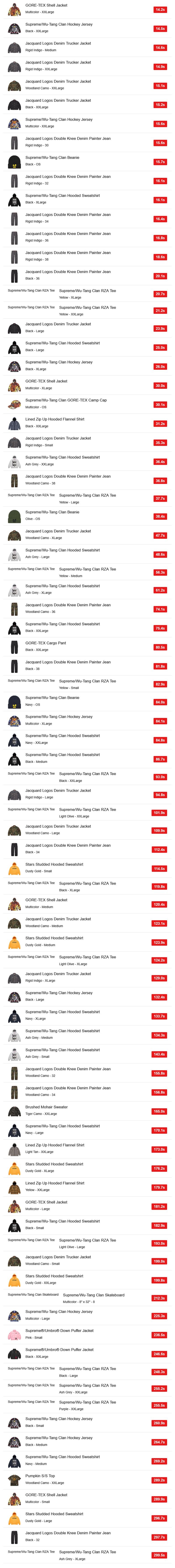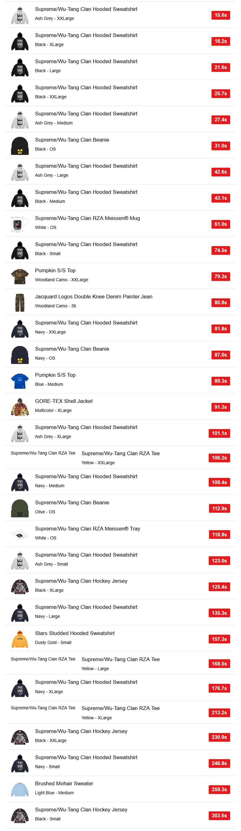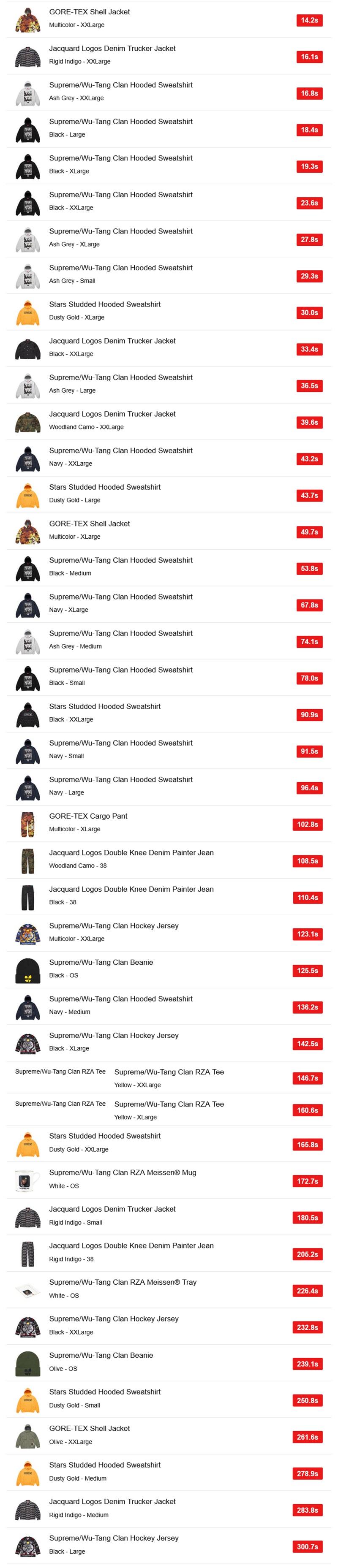 海外ではそのウータン・クランとのコラボアイテムの注目度が高かったようだが、特にフーディー「Supreme/Wu-Tang Clan Hooded Sweatshirt」の人気が高かったようだ。