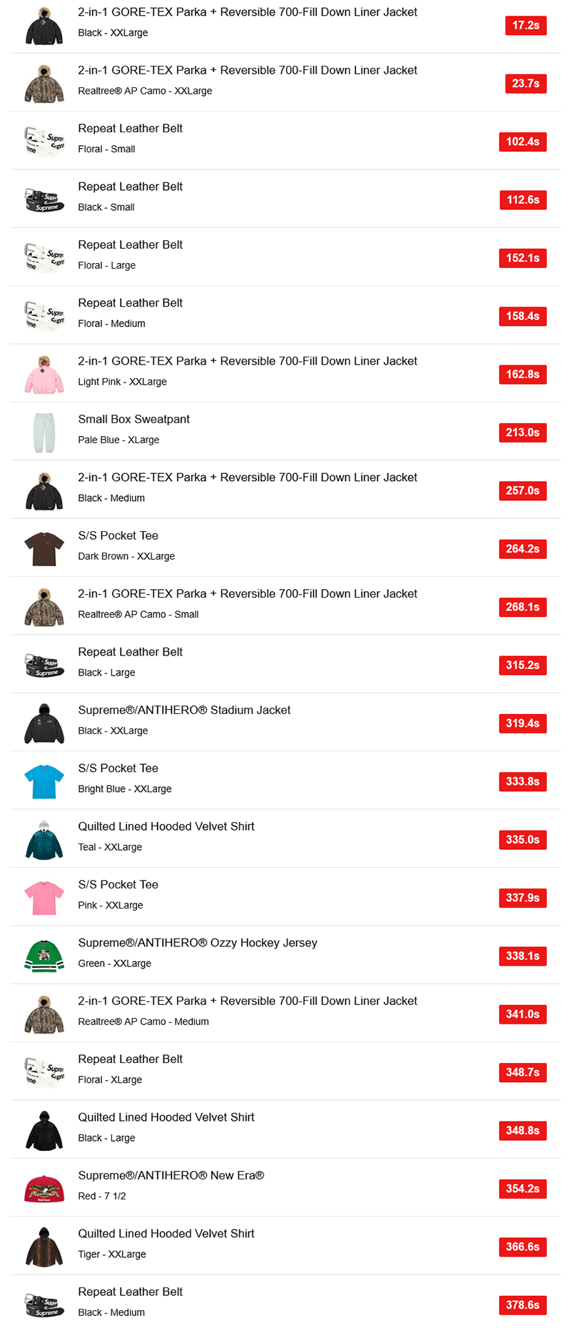 Supreme 2025FW Week13以降の完売タイムは次のページへ!