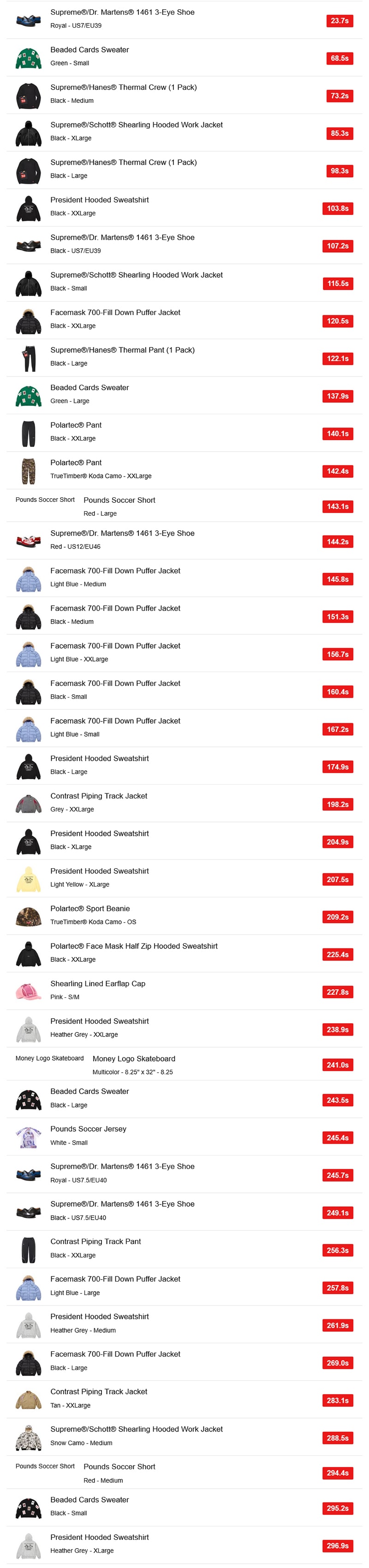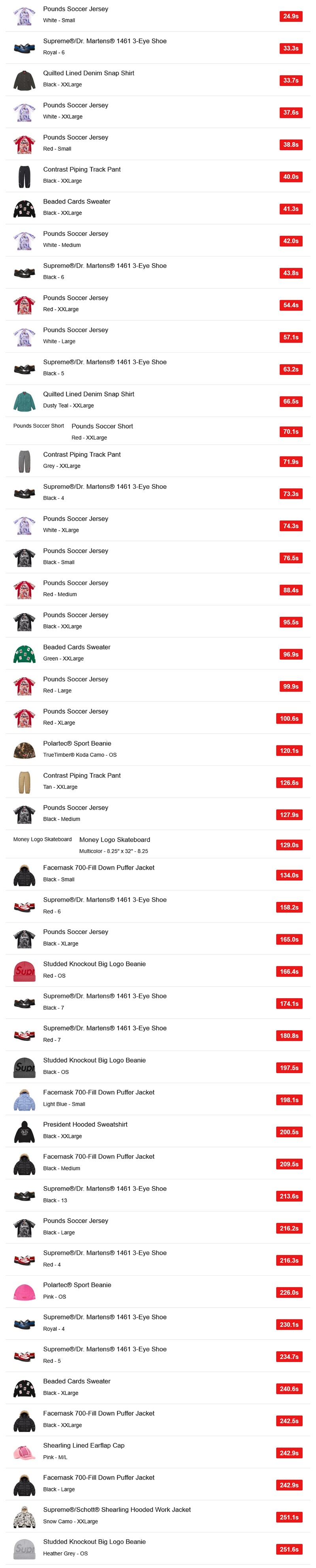 Supreme 2025FW|サイズ表+価格を全商品まとめ!Week1からWeek19まで