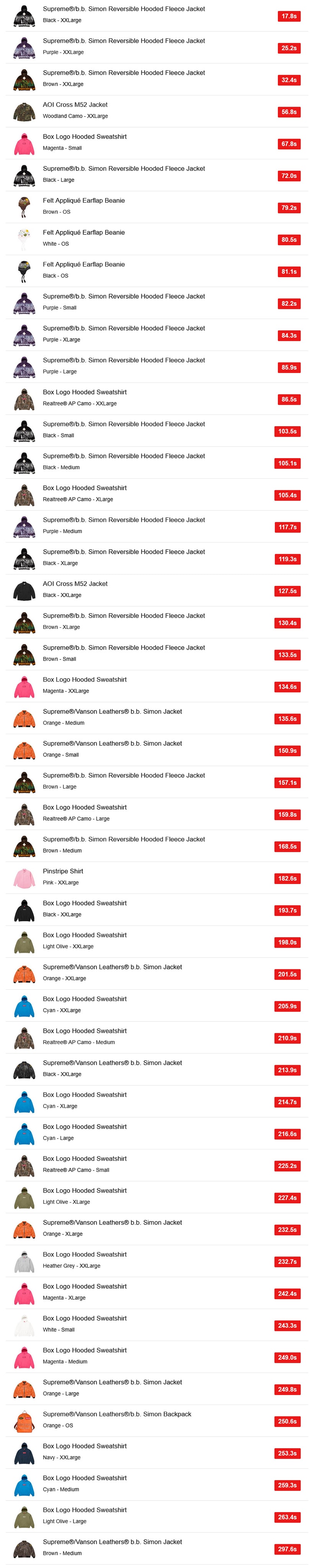 海外ではそんなボックスロゴのフーディーの人気はそれほどでもなく、b.b.サイモンコラボのフリースジャケット「Supreme®/b.b. Simon Reversible Hooded Fleece Jacket」などの方が人気だったようだ。