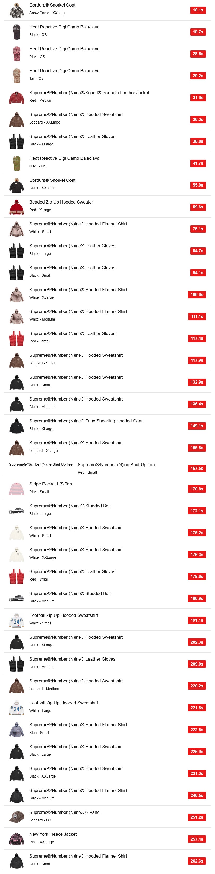 Supreme 2025FW|サイズ表+価格を全商品まとめ!Week1からWeek19まで