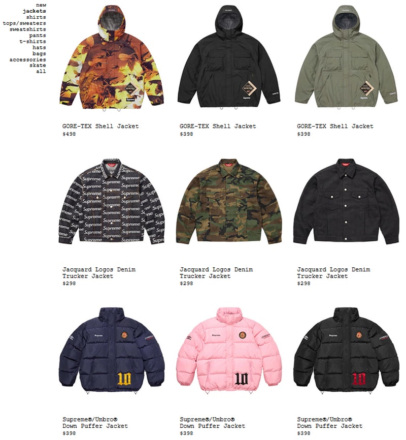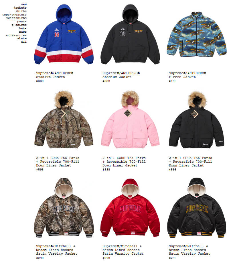 Supreme 2025FW|サイズ表+価格を全商品まとめ!Week1からWeek19まで
